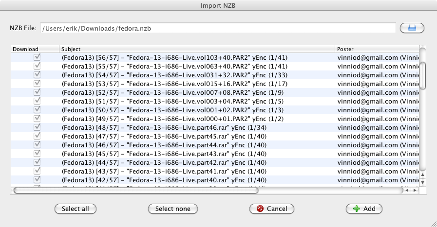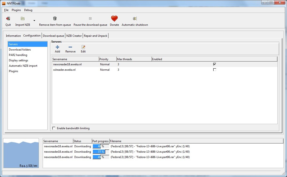 Afterwards you can install NNTPGrab by using the command yum install nntpgrab or by using the graphical software manager to install the 'nntpgrab' package. No additional configuration is necessary.