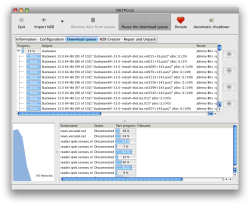 On Mac OS X it's much easier to generate a stack trace. It's done automatically when a segmentation fault occurs in NNTPGrab! In this situation, a popup will be shown automatically mentioning that a crash has occured in NNTPGrab. In this popup there's an option to report this to the developers. Click this button and send all the information you get to see now along the bugreport