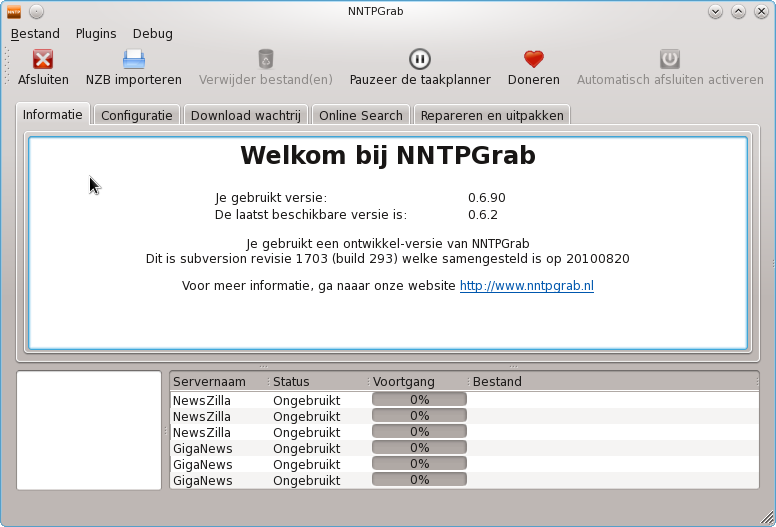 Our friends at Binaries4All have created a HOWTO explaining how the NNTPGrab program can be used. At the moment this HOWTO is only available in the Dutch language and can be found at https://www.binaries4all.nl/nntpgrab/